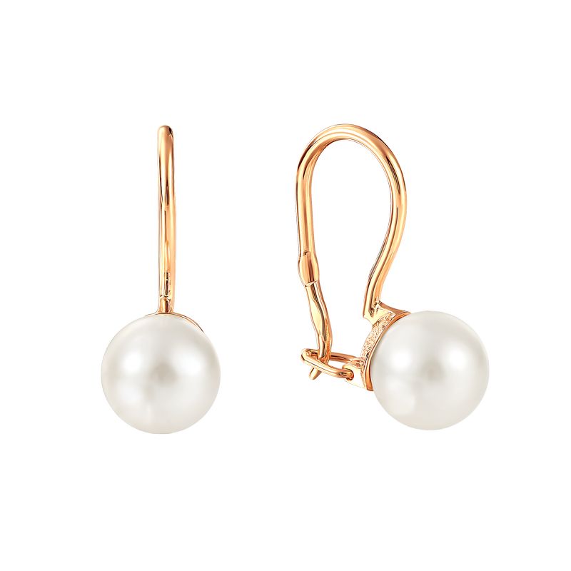 Серьги из красного золота 585° пробы с жемчугом и фианитом