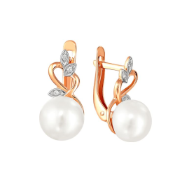 Серьги из красного золота 585° пробы с жемчугом и фианитом
