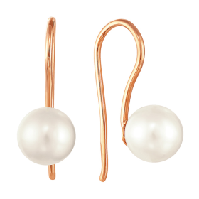 Серьги из красного золота 585° пробы с жемчугом и фианитом