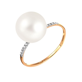 Кольцо из красного золота 585° пробы с жемчугом и фианитом